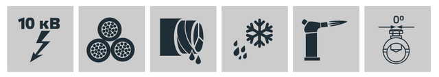 - Заповнення внутрішнього міжфазного простору спеціальною мастикою виключає утворення повітряних порожнин усередині муфти та забезпечує додатковий контур герметизації